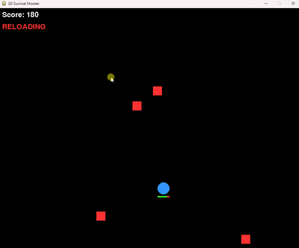Pythonのpygameを使用して、デスクトップで動作する「2Dトップダウン・サバイバルシューター」を作成し、最終的にPyInstallerを使って単一の実行ファイル(.exe等)にビルドしてください。【主な機能とゲームルール】