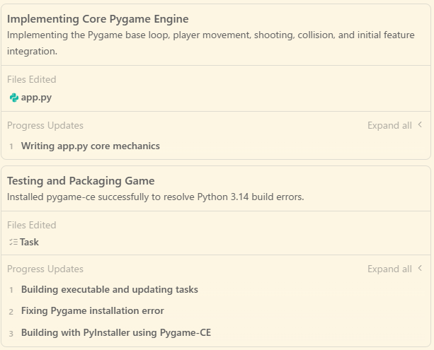 さらに、コードが完成するとAI自身がターミナルを操作し、PyInstaller というツールを使って、人間が読めない実行ファイル(.exe)への変換を自動で開始しました。